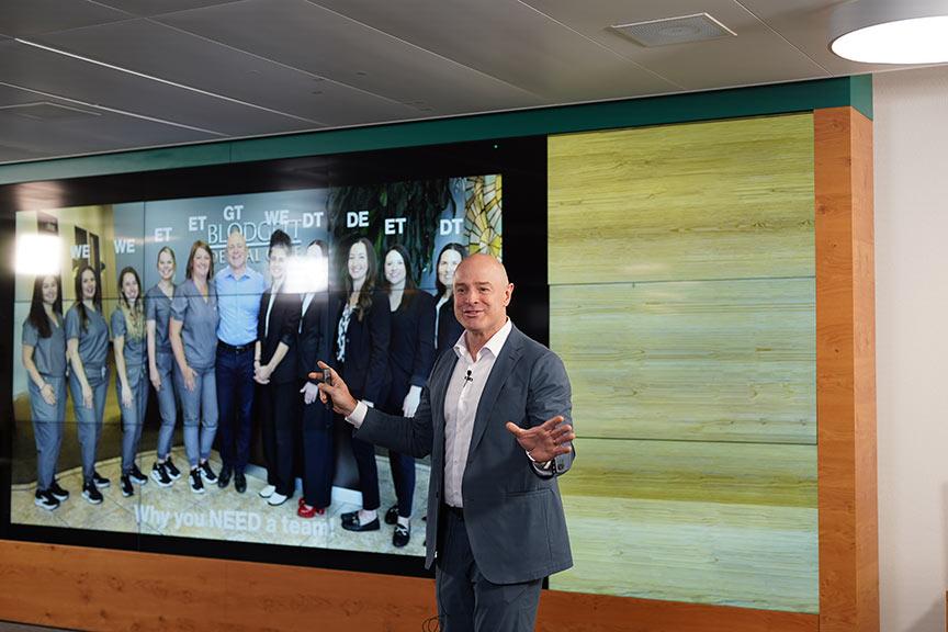 His philosophy centers on “First psychology, then biology optimized by technology”—treating patients as whole human beings, not just teeth.